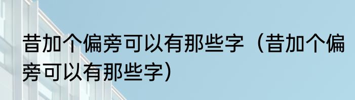 昔加个偏旁可以有那些字(昔加个偏旁可以有那些字)