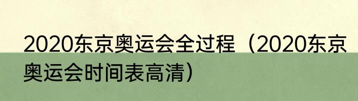 2020东京奥运会全过程(2020东京奥运会时间表高清)
