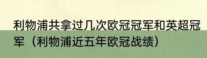 利物浦共拿过几次欧冠冠军和英超冠军(利物浦近五年欧冠战绩)