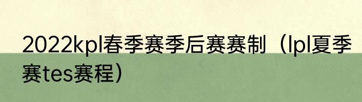 2022kpl春季赛季后赛赛制(lpl夏季赛tes赛程)