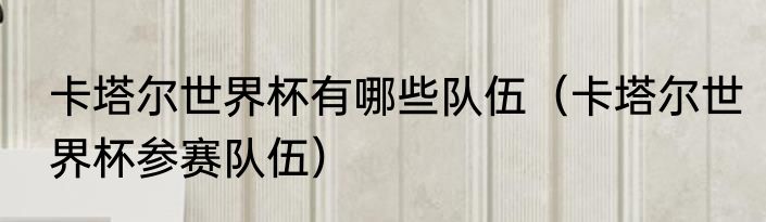 卡塔尔世界杯有哪些队伍?