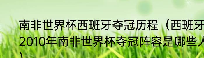 南非世界杯西班牙夺冠历程(西班牙2010年南非世界杯夺冠阵容是哪些人)