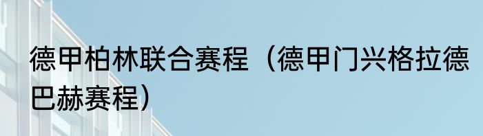 德甲柏林联合赛程(德甲门兴格拉德巴赫赛程)