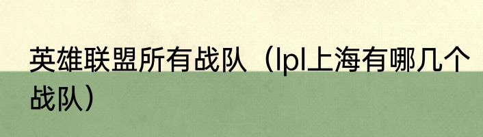 英雄联盟所有战队(lpl上海有哪几个战队)