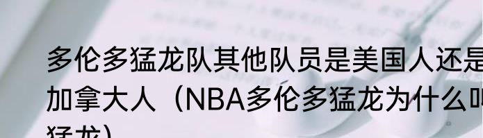 多伦多猛龙队其他队员是美国人还是加拿大人(NBA多伦多猛龙为什么叫猛龙)