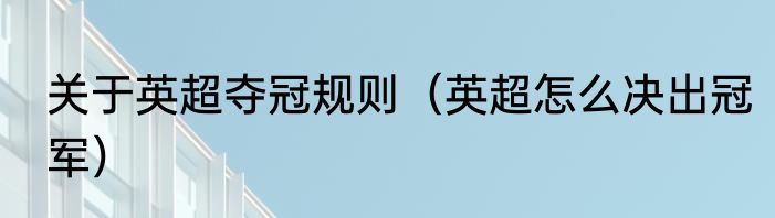 关于英超夺冠规则?