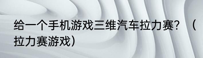 给一个手机游戏三维汽车拉力赛?(拉力赛游戏)