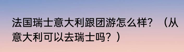 提及法国瑞士意大利跟团游怎么样?(从意大利可以去瑞士吗?)的相关内容,许多人不太了解,来看看小震的介绍吧!