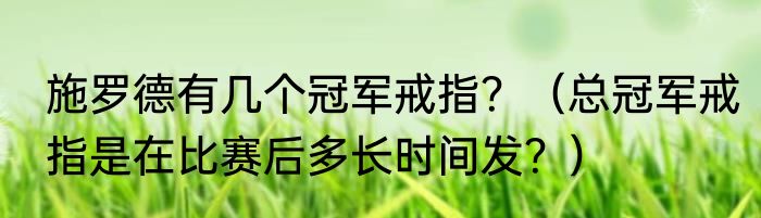 提及施罗德有几个冠军戒指?(总冠军戒指是在比赛后多长时间发?)的相关内容,许多人不太了解,来看看小智的介绍吧!