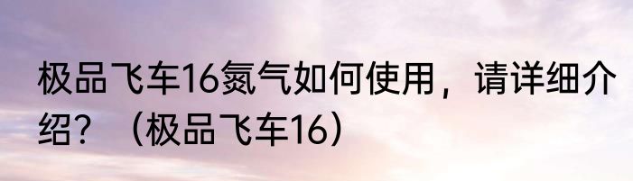 极品飞车16氮气如何使用,请详细介绍?(极品飞车16)