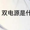 双电源,引自两个供电电源(性质不同),馈电线路是两条线路,平时是一用一备,如果一路出现停电等故障,配电室内自动切换另一路电源,双电源包含柴油发电机供电。