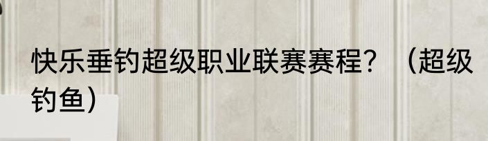 快乐垂钓超级职业联赛赛程?(超级钓鱼)