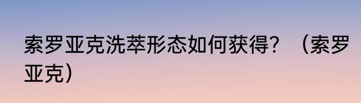 索罗亚克洗萃形态如何获得?(索罗亚克)