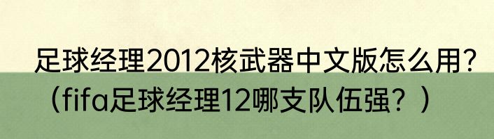 提及足球经理2012核武器中文版怎么用?(fifa足球经理12哪支队伍强?)的相关内容,许多人不太了解,来看看小洁的介绍吧!