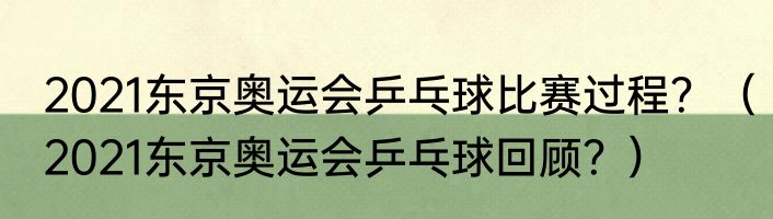 2021东京奥运会乒乓球比赛过程?(2021东京奥运会乒乓球回顾?)