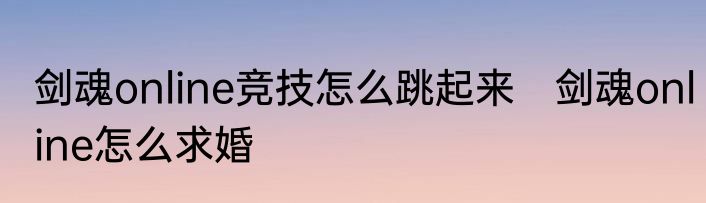 剑魂online竞技怎么跳起来 剑魂online怎么求婚