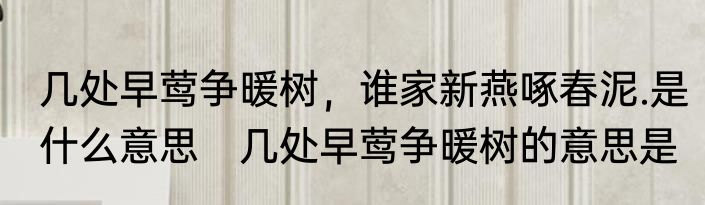 几处早莺争暖树,谁家新燕啄春泥.是什么意思 几处早莺争暖树的意思是