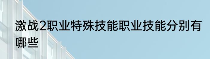 激战2职业特殊技能职业技能分别有哪些?