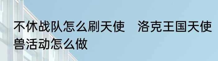 不休战队怎么刷天使?