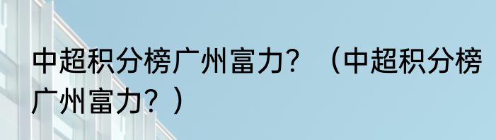 中超积分榜广州富力?(中超积分榜广州富力?)