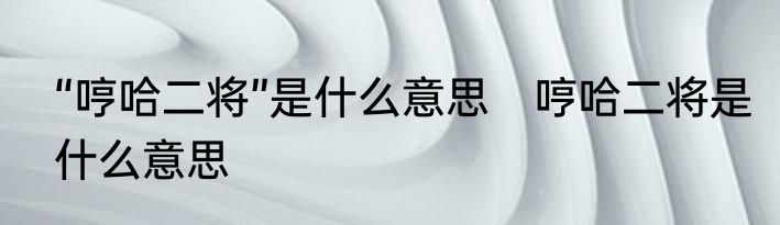 “哼哈二将”是什么意思?