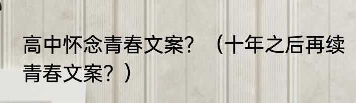 提及高中怀念青春文案?(十年之后再续青春文案?)的相关内容,许多人不太了解,来看看小绮的介绍吧!