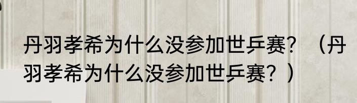 丹羽孝希为什么没参加世乒赛?(丹羽孝希为什么没参加世乒赛?)