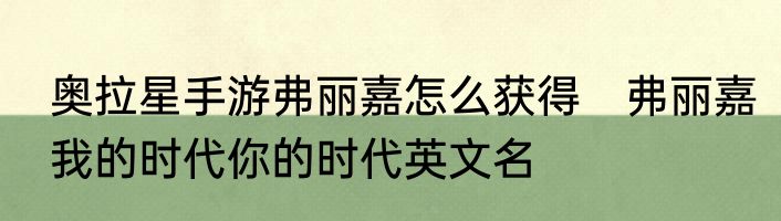 奥拉星手游弗丽嘉怎么获得 弗丽嘉我的时代你的时代英文名