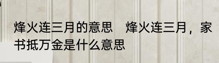 烽火连三月的意思 烽火连三月,家书抵万金是什么意思