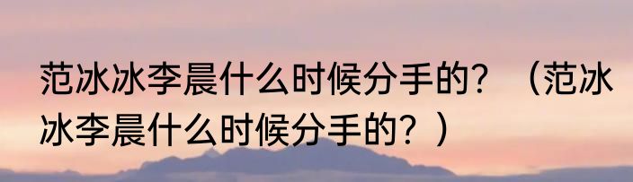 范冰冰李晨什么时候分手的?(范冰冰李晨什么时候分手的?)