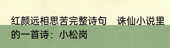 红颜远相思苦完整诗句 诛仙小说里的一首诗:小松岗
