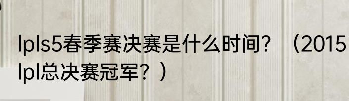 提及lpls5春季赛决赛是什么时间?(2015lpl总决赛冠军?)的相关内容,许多人不太了解,来看看小艳的介绍吧!