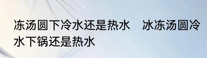 冻汤圆下冷水还是热水?