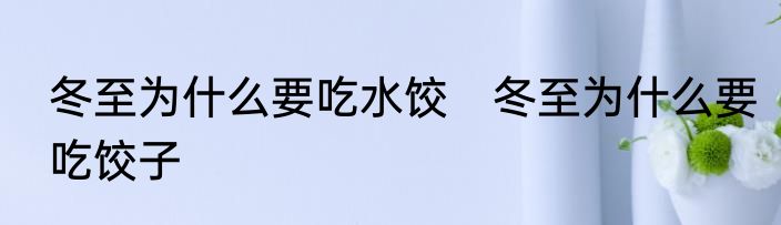 冬至为什么要吃水饺 冬至为什么要吃饺子