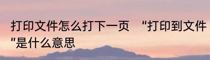 打印文件怎么打下一页 “打印到文件”是什么意思