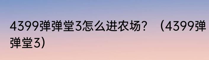 4399弹弹堂3怎么进农场?(4399弹弹堂3)
