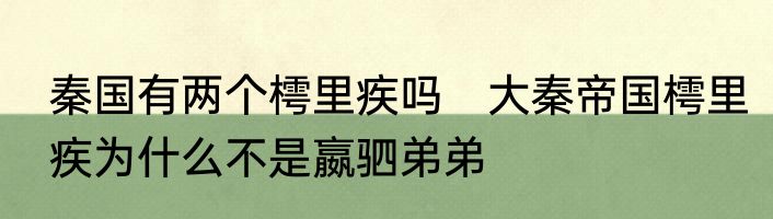秦国有两个樗里疾吗 大秦帝国樗里疾为什么不是嬴驷弟弟