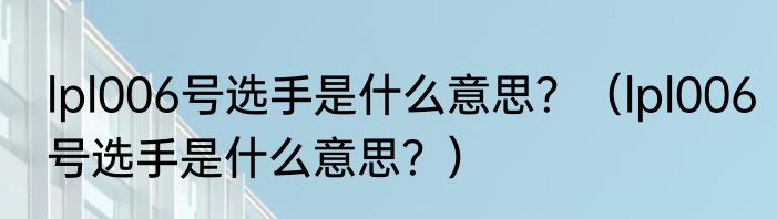 提及lpl006号选手是什么意思?(lpl006号选手是什么意思?)的相关内容,许多人不太了解,来看看小贞的介绍吧!