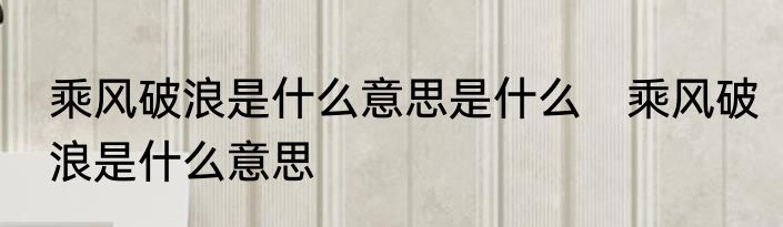 乘风破浪是什么意思是什么?