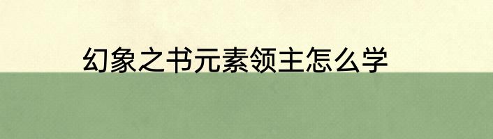幻象之书元素领主怎么学?
