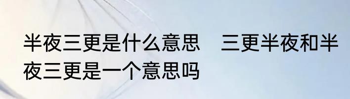 三更半夜和半夜三更是一个意思吗?