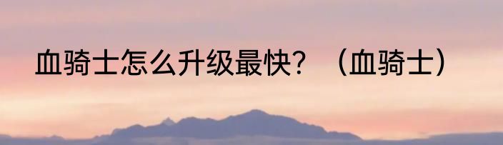 血骑士怎么升级最快?(血骑士)