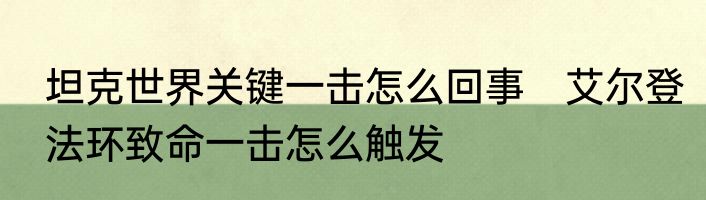 坦克世界关键一击怎么回事 艾尔登法环致命一击怎么触发