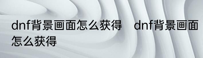 dnf背景画面怎么获得 dnf背景画面怎么获得