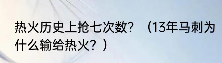 提及热火历史上抢七次数?(13年马刺为什么输给热火?)的相关内容,许多人不太了解,来看看小震的介绍吧!