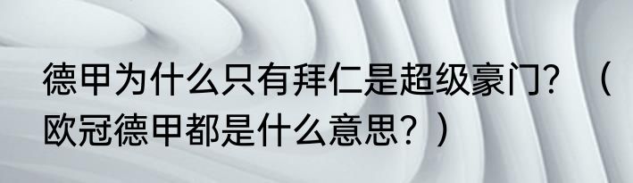 德甲为什么只有拜仁是超级豪门?(欧冠德甲都是什么意思?)