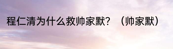 程仁清救帅家默是因为对方的经历和自己非常的相似,所以程仁清不希望帅家默和自己一样悲惨,这也是他救对方的主要的原因。