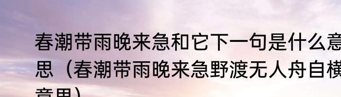 春潮带雨晚来急和它下一句是什么意思(春潮带雨晚来急野渡无人舟自横意思)