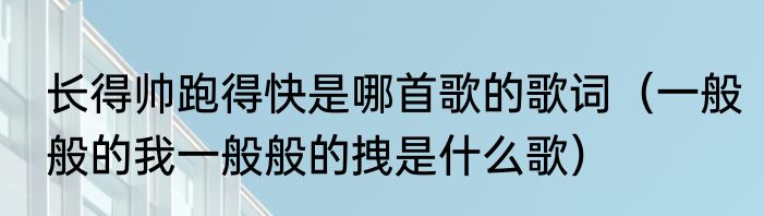 长得帅跑得快是哪首歌的歌词(一般般的我一般般的拽是什么歌)