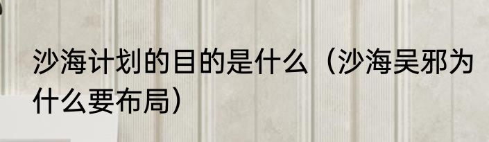 沙海计划的目的是什么?